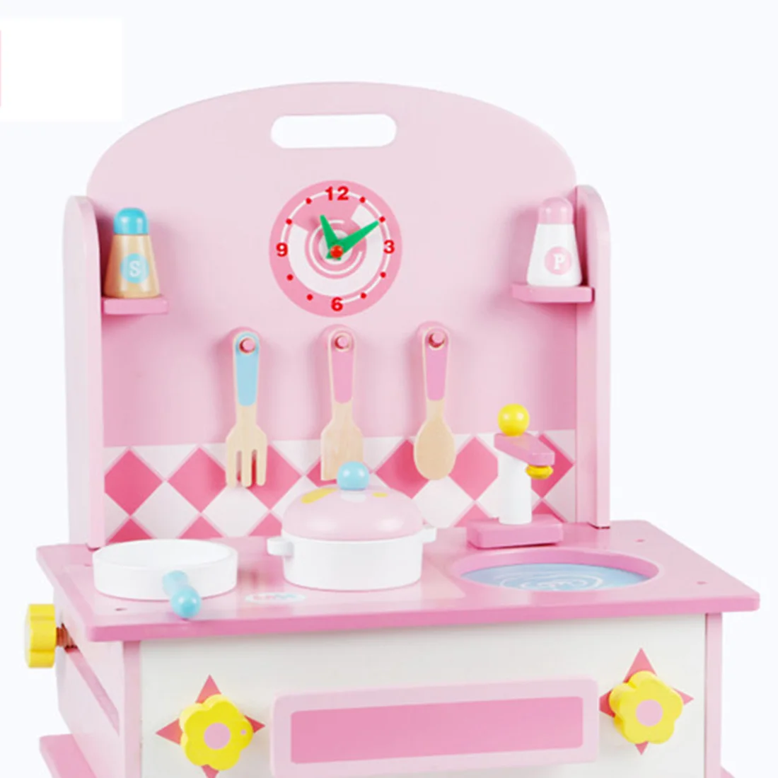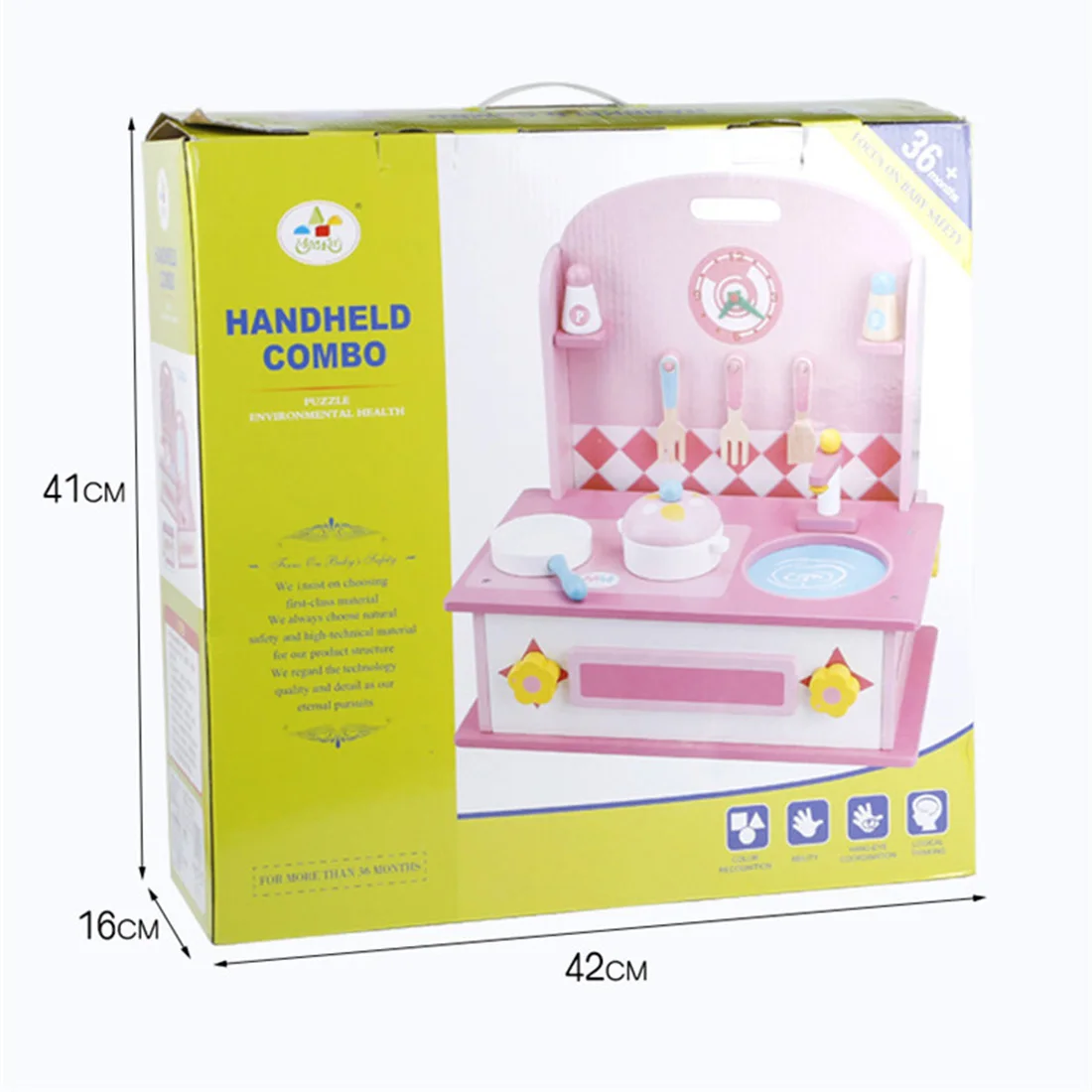 BEST QUALITY 14Pcs 2-In-1 Children Pretend Play Wooden Dressing Table Kitchen Counter Playset Educational Make U