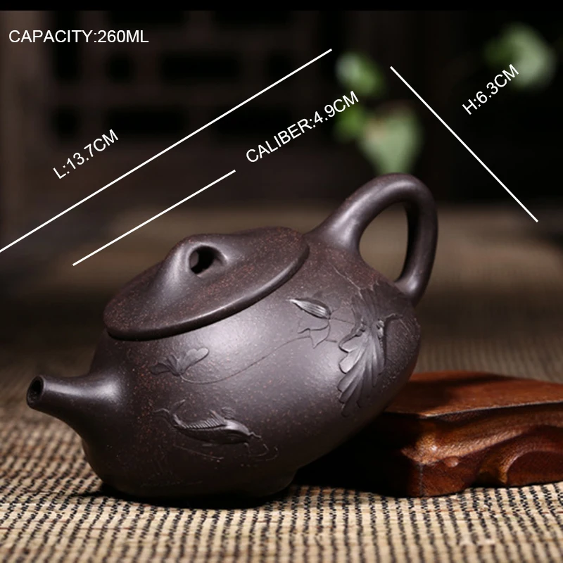 260ML Creative Sculpture Fish Lotus Pattern Stone Scoop Teapot Authentic Purple Clay Chinese Kung F