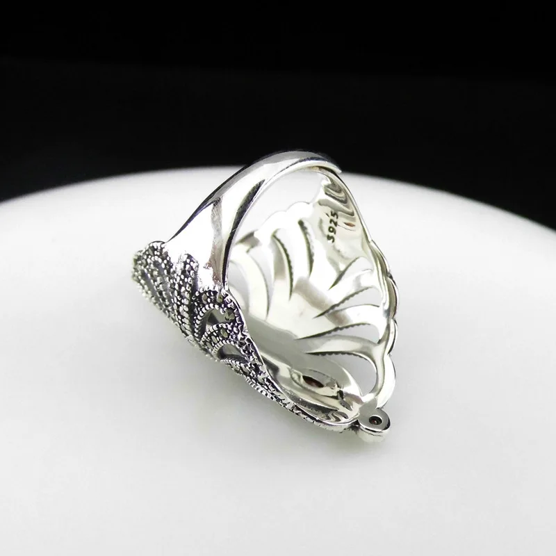 FNJ 925 Silver Ring MARCASITE Statement Red Zircon Original S925 Sterling Silver Rings for Women Je