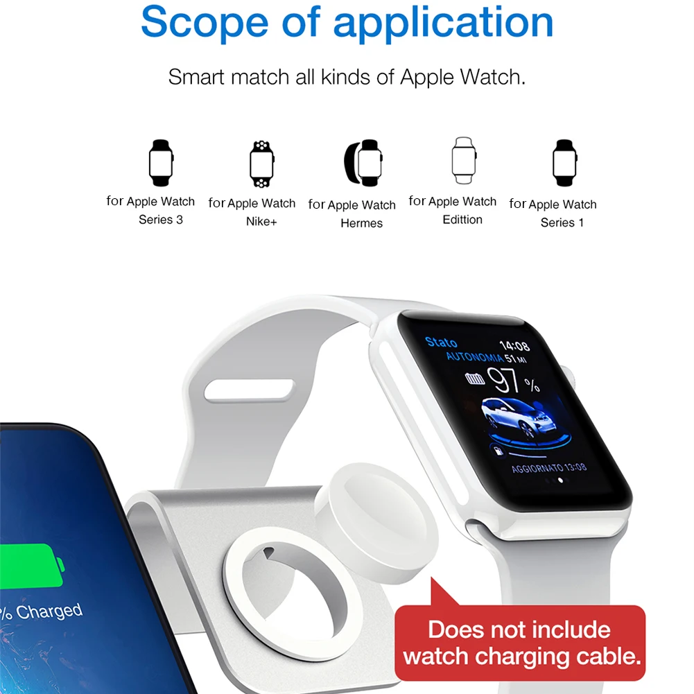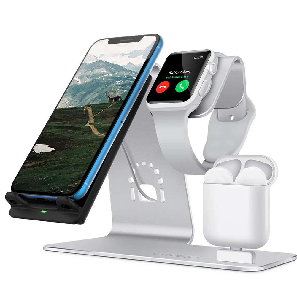 3 In 1 Wireless Charger Stand Dock Line Smart Watch Office Home Table Top Qi Device Earphone Alumin