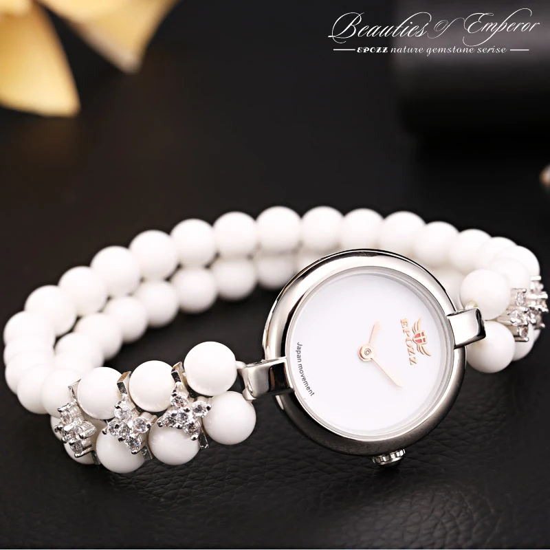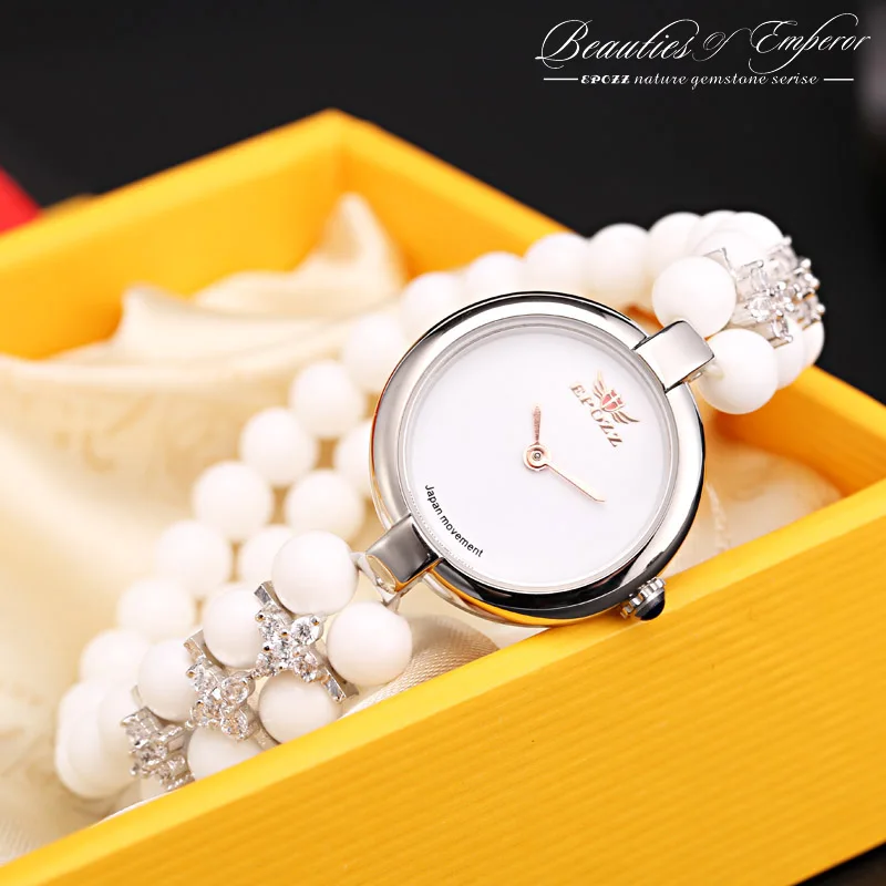 BEST Top Luxury Brand Epozz Beauties Of Emperor Natural Stone White Quartz Analog Beads 925 Silver Fashi