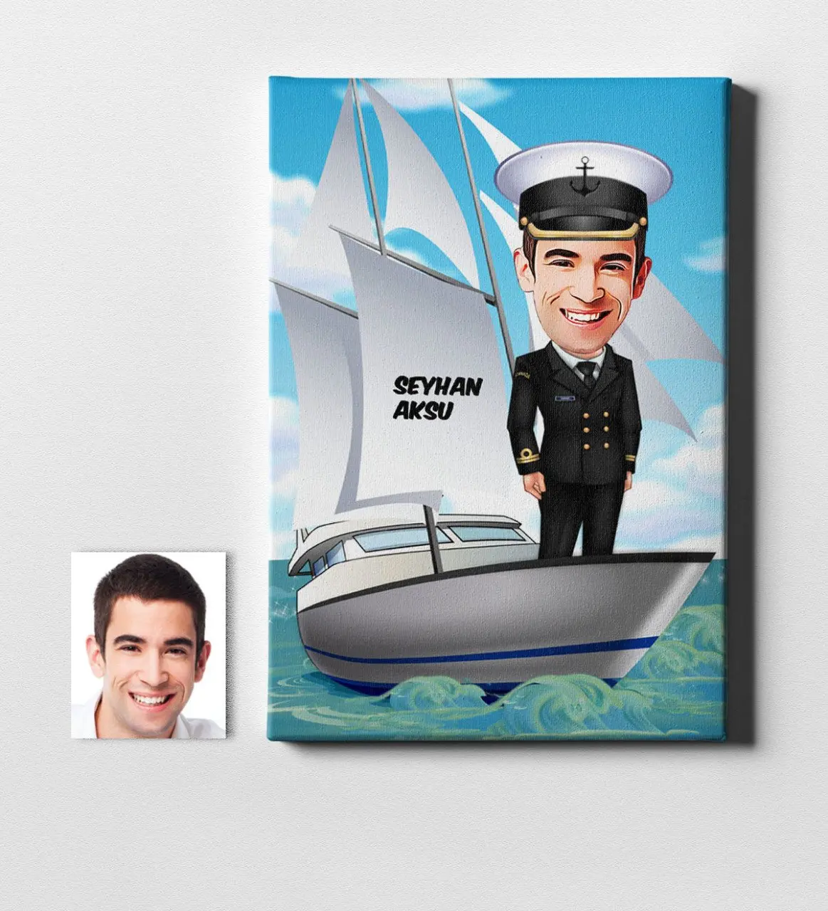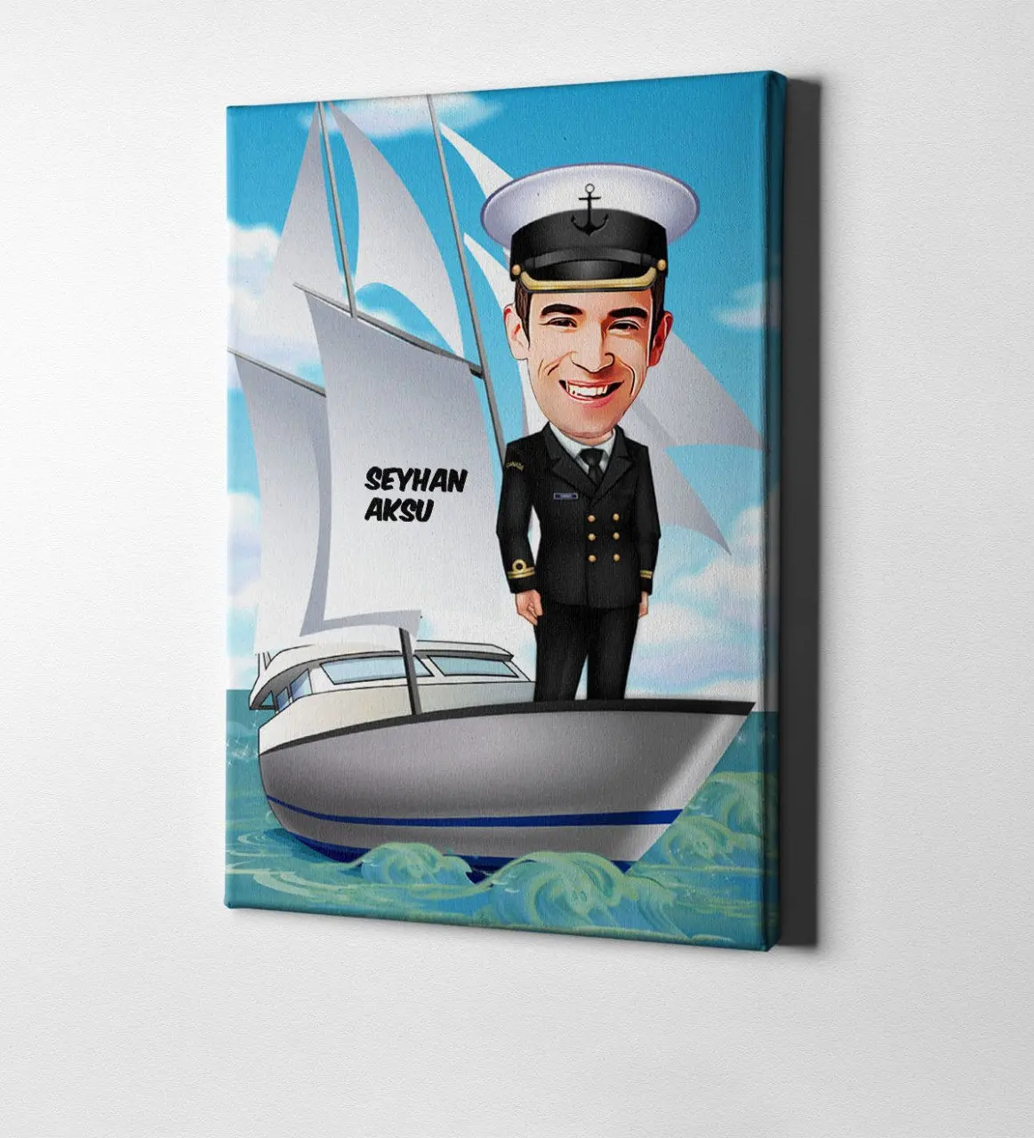 ORIGINAL Personalized Mr Ship Captain Cartoon Canvas Table (50x70 cm.) 1
